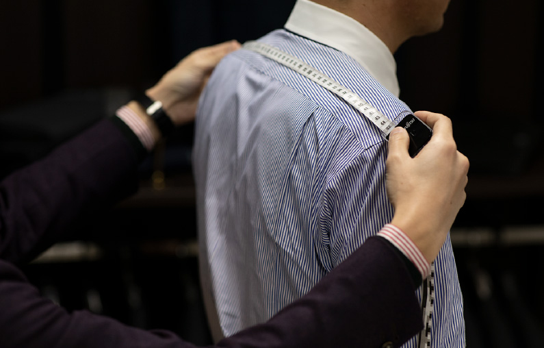 本当によいスーツには生地、パターンなどさまざまな要素がありますが、身に纏う人の体型にフィットしているかが重要。フィッターの経験と技術が鍵を握る部分ですが、センチュリーグループでは経験豊かなスタッフを育成しており、お客様の様々なご要望に答えるべく、全国にスタイリストの配置が可能です。